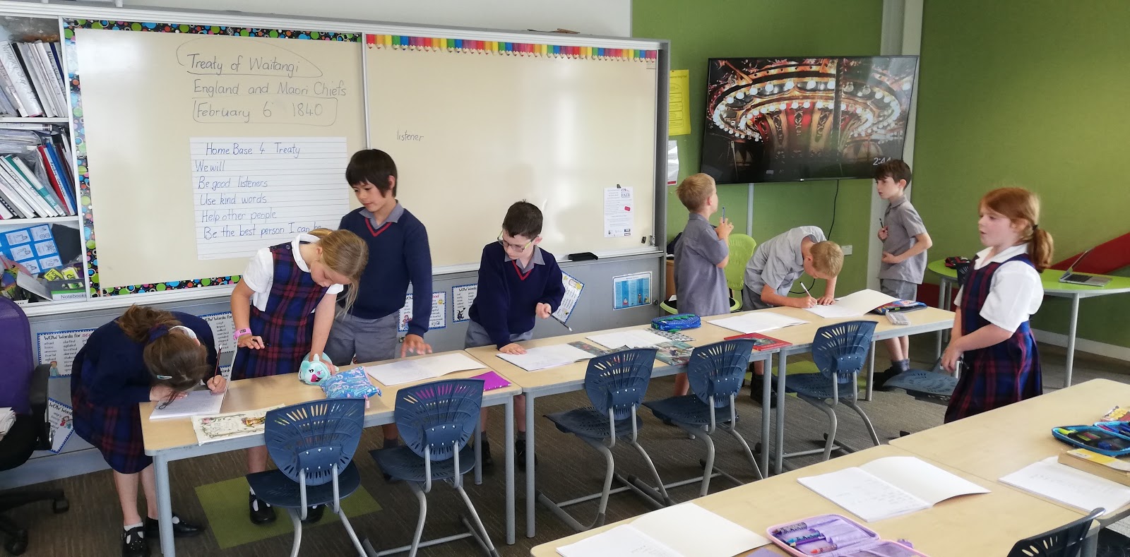 On Wednesday one of our activities was to create a treaty by agreeing how we will work and play together in our hub. These photos show Home Base Four students signing their copies of the treaty.
