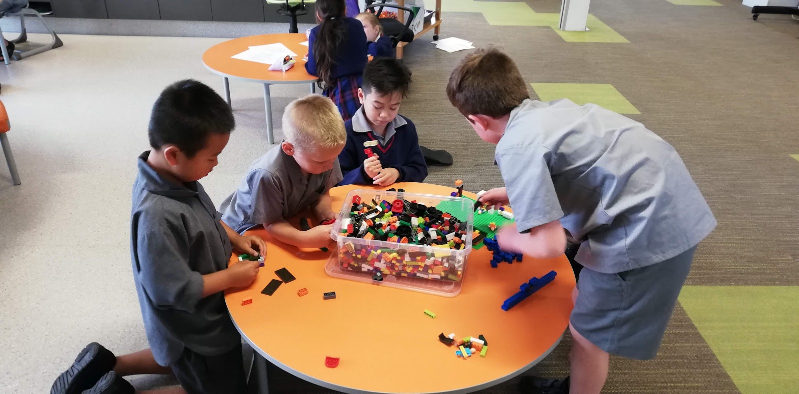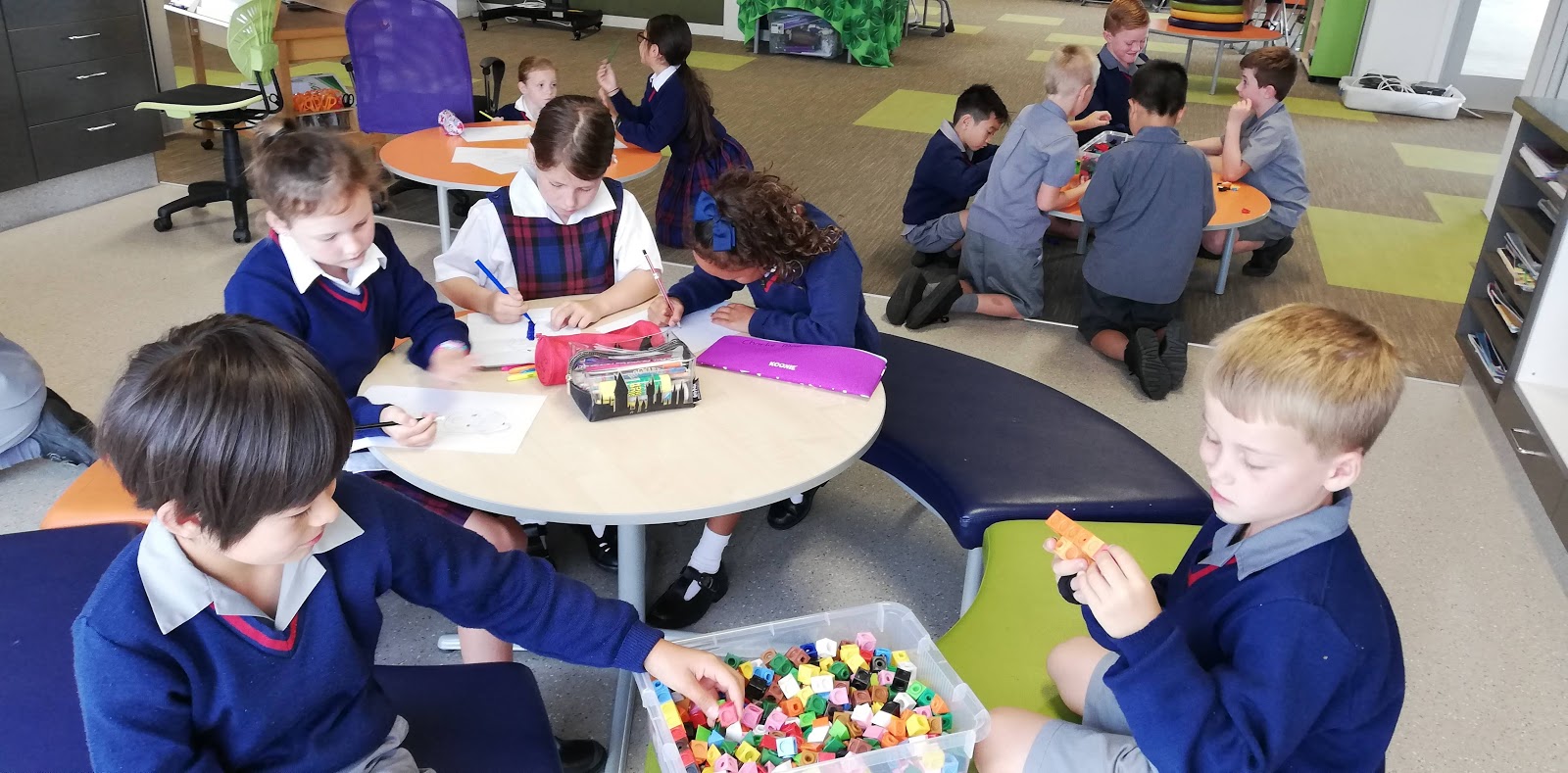 Everyone is busy building, drawing, reading and playing board games.
